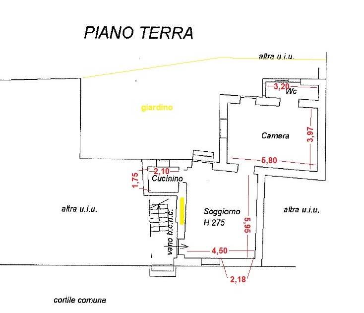 • Piano Terra – Bilocale su due livelli: 61 mq con eventuale giardino privato di 60 mq, cantina, box e posto auto. (85 mq comm.li)